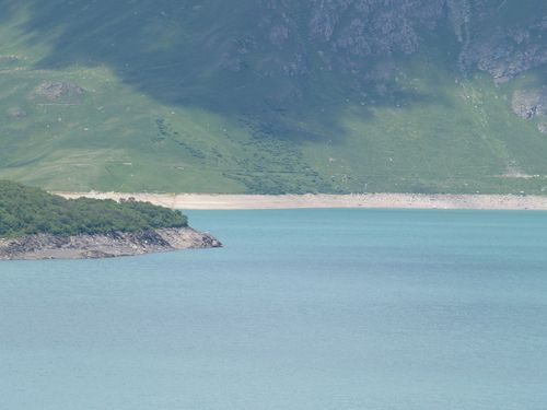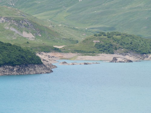 | 7ème question Le barrage du Mont-Cenis fut, tout d’abord, construit en 1921 par les Italiens, pour servir la centrale de Venaus près de Suze. Puis le col du Mont-Cenis redevint français en 1947, et EDF décupla en 1968 l’importance du lac en relevant le barrage. Sa longueur passa alors à 1 400 m, sa largeur au sommet à 12 m, sa largeur à la base à 460 m, sa hauteur à 120 m et sa capacité fut ainsi portée à 315 millions de m3. Un tiers est alloué à la centrale de Venaus pour 240 000 kW et deux tiers à la centrale française de Villarodin, près de Modane, pour 360 000 kW. L’hospice a été noyé. Lors des basses eaux, nécessitées périodiquement pour l’entretien du barrage, on aperçoit le rectangle des fondations, qui fait 253,60 m de long sur 56,60 m de large.